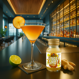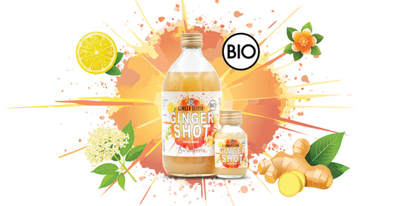 Essayez nos Ginger Shot, du gingembre bio du Pérou selectionné avec soin, sirop de fleur de sureau, fleur d'oranger, citron et poivre noir de madagascar.